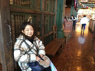お土産屋で敦子クリスマスプレゼント交換用 トイストーリーの遊具コーナー見て、トイレ |