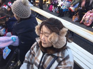 6時40分ランド到着。 あれ?思ったより空いてない? 前から3人目に並んだけどホッカイロ忘れパパが車に取りに行く。 その後でわたしが常備薬忘れてまた車にとりに行く。 余計な体力を消耗してしまった。 |